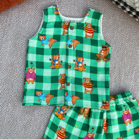Muslin Full Sleeves Unisex Jhabla Set- Monkeying around