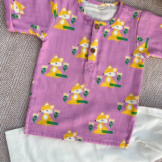 'Nani Ghar ka Champa'- Organic Cotton Unisex Pink Floral Kurta Set