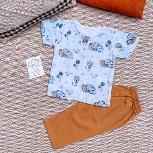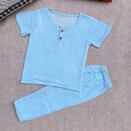 Perfect loungewear and playwear for kids, browse our collection of comfy co-ords in Linen, Cotton and Muslin!