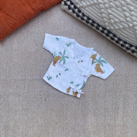 Muslin Full Sleeves Jhabla Set- Monkeying around