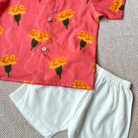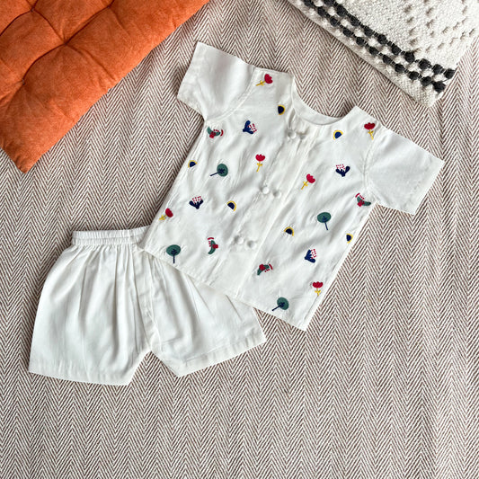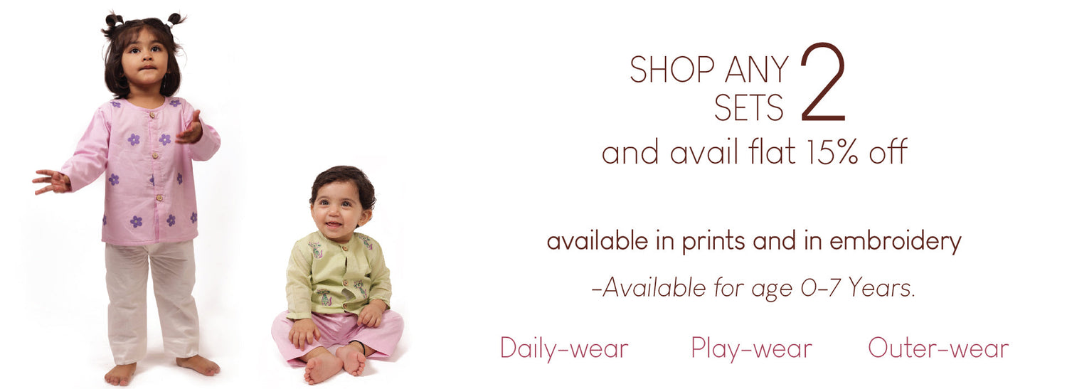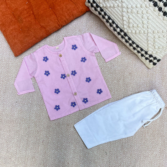 Organic Cotton Full Sleeves Jhabla Set- Daisy