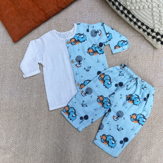 Muslin Full sleeves Jhabla Set- Elephant Clan