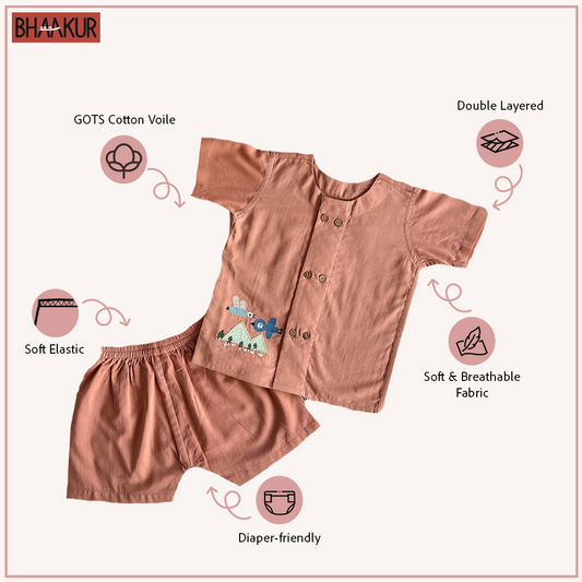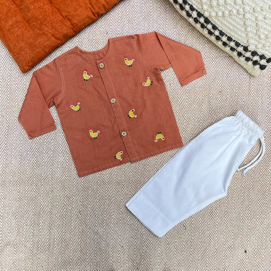 Organic Cotton Full Sleeves Jhabla Set- Hen