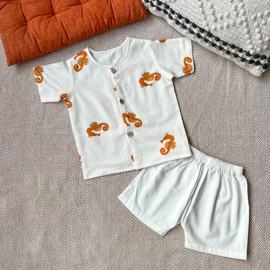 Organic Cotton Full Sleeves Jhabla Set- Mango