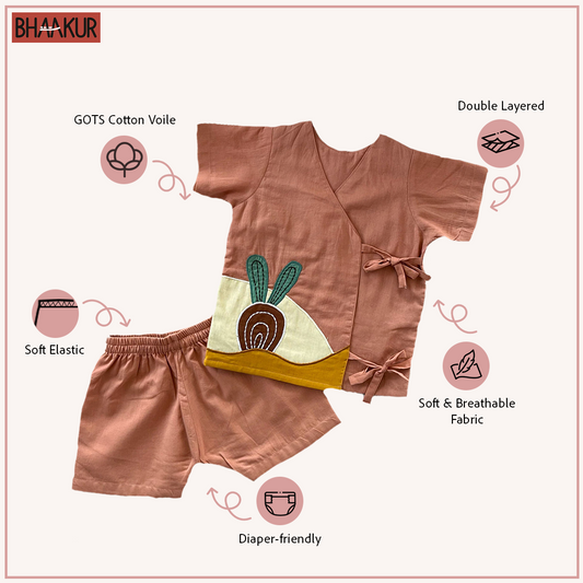 Organic Cotton Full Sleeves Jhabla Set- Monkey