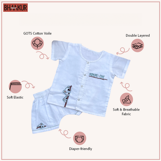 Muslin Full Sleeves Jhabla Set- Monkeying around