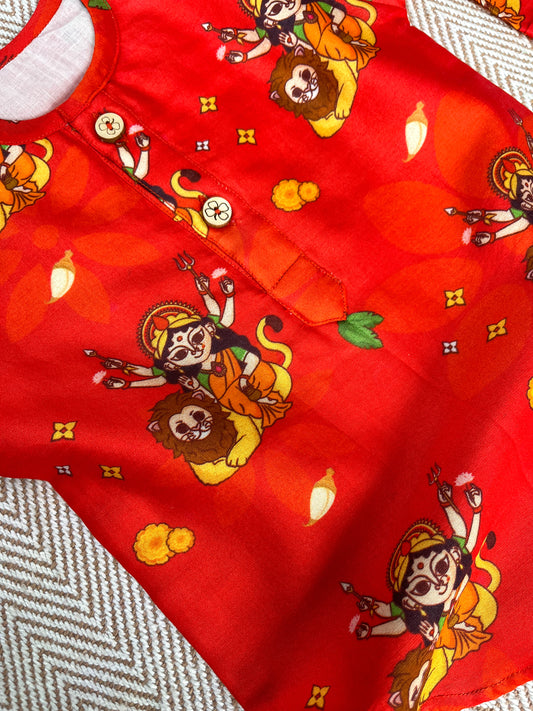 Chanderi Unisex 'Goddess Durga' Kurta Set