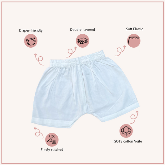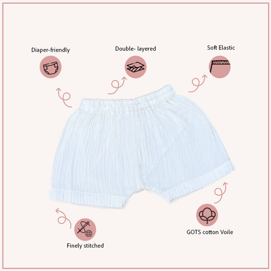 Crinkled Muslin White Shorts