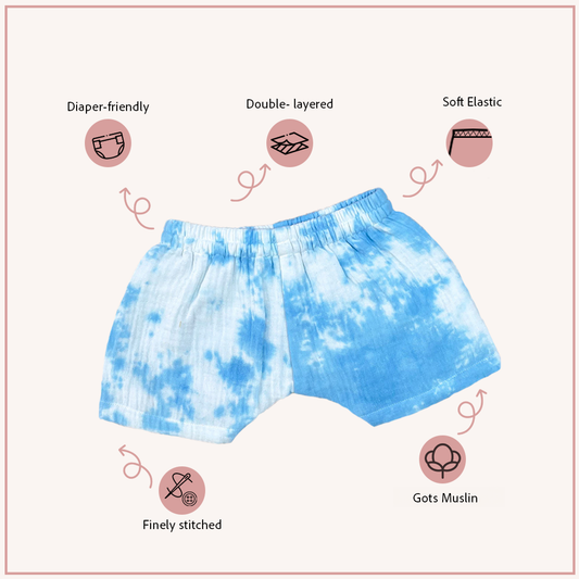 Blue Tie and Dye Muslin Shorts
