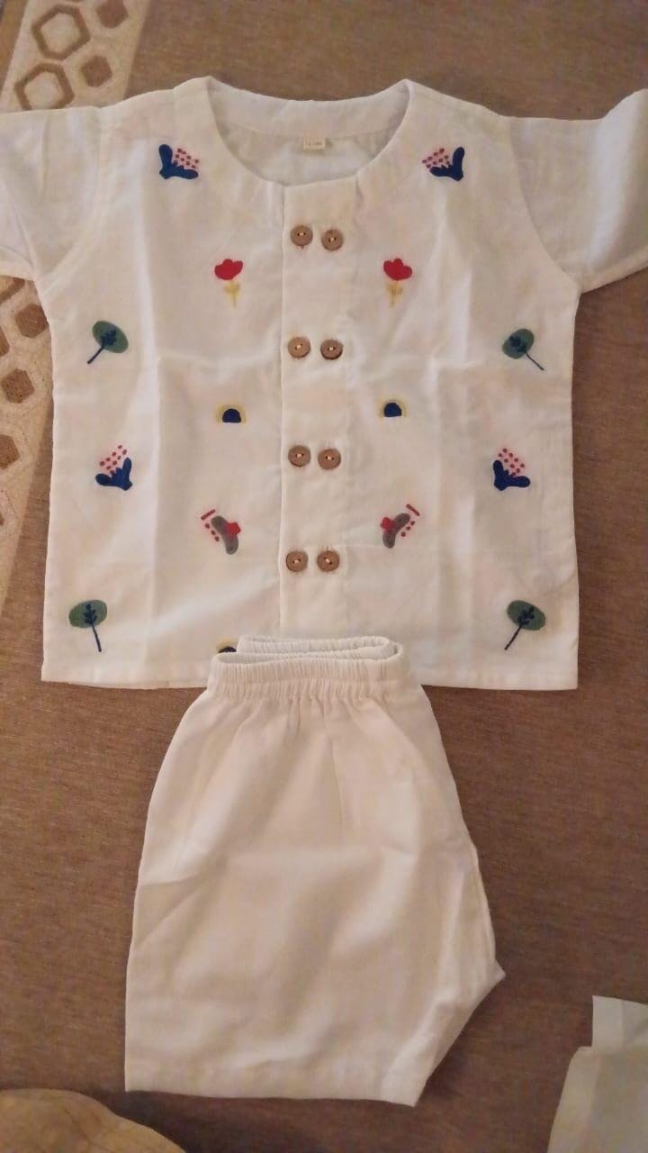 This jhabla set by Bhaakur is thoughtfully designed to prioritize your baby's comfort. The loose-fitting top and matching bottoms allow for easy movement, ensuring that your little one can play and explore with unrestricted joy.