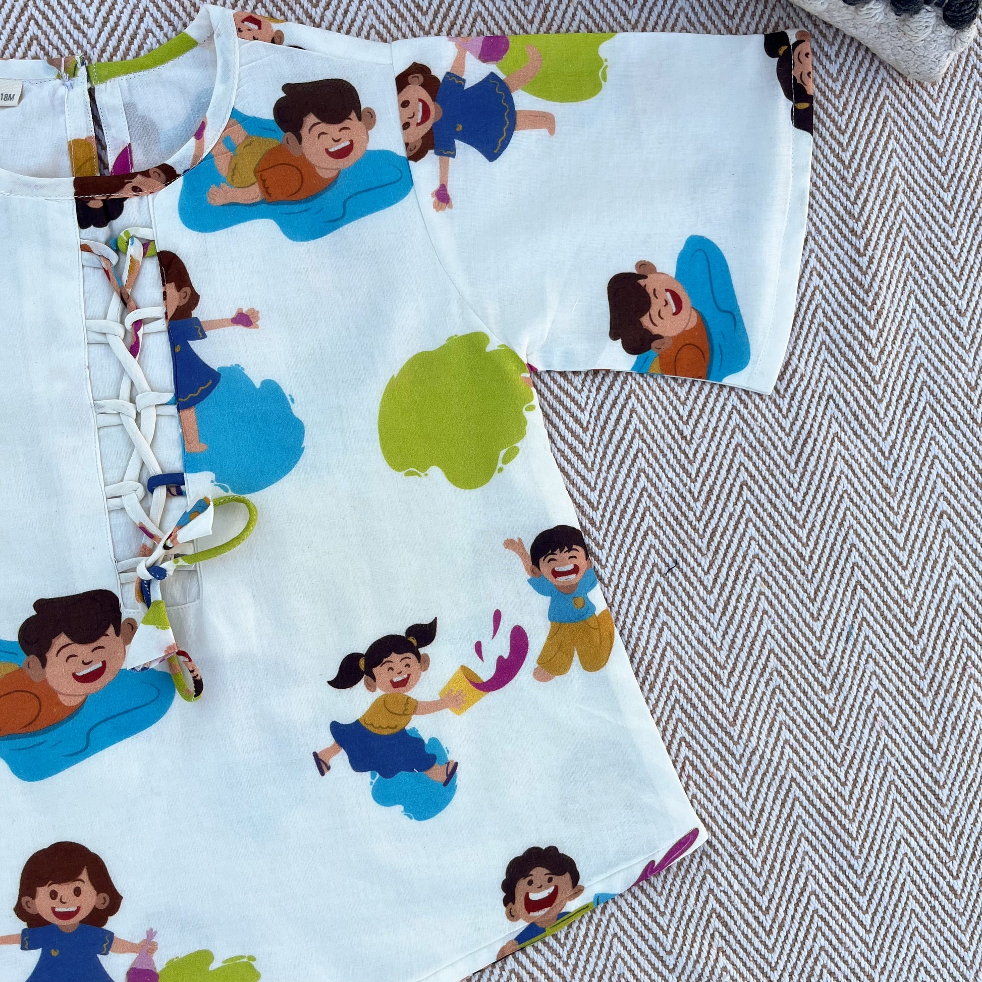 Children love colours and water and this Holi Print set shouts fun. Made from soft, breathable fabric, this set is designed for all-day comfort—whether they’re playing with colors, enjoying festive sweets, or posing for those adorable family pictures! 🌸✨
