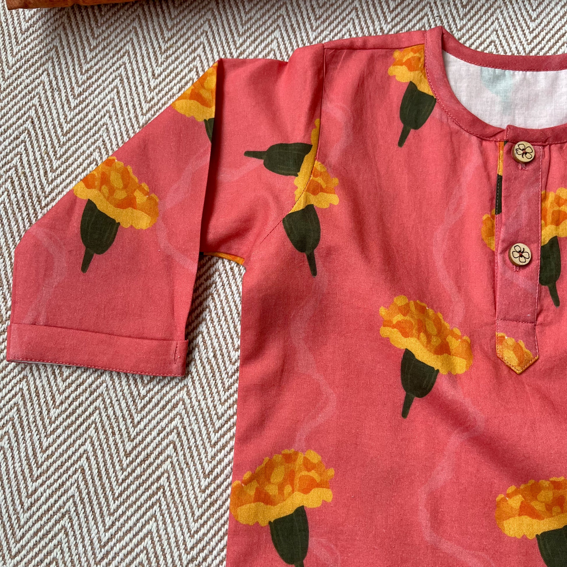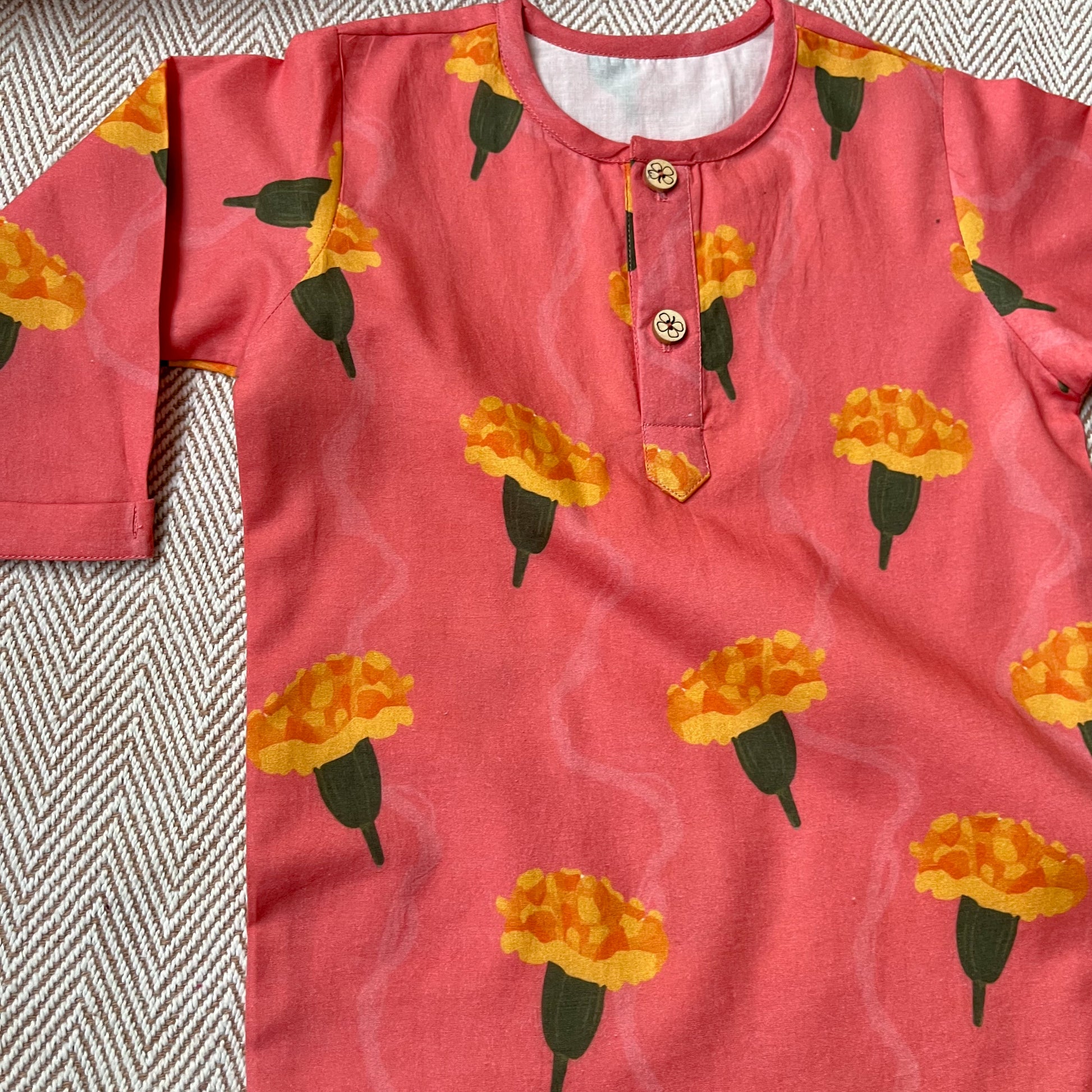Organic Cotton Unisex Marigold Pink Kurta