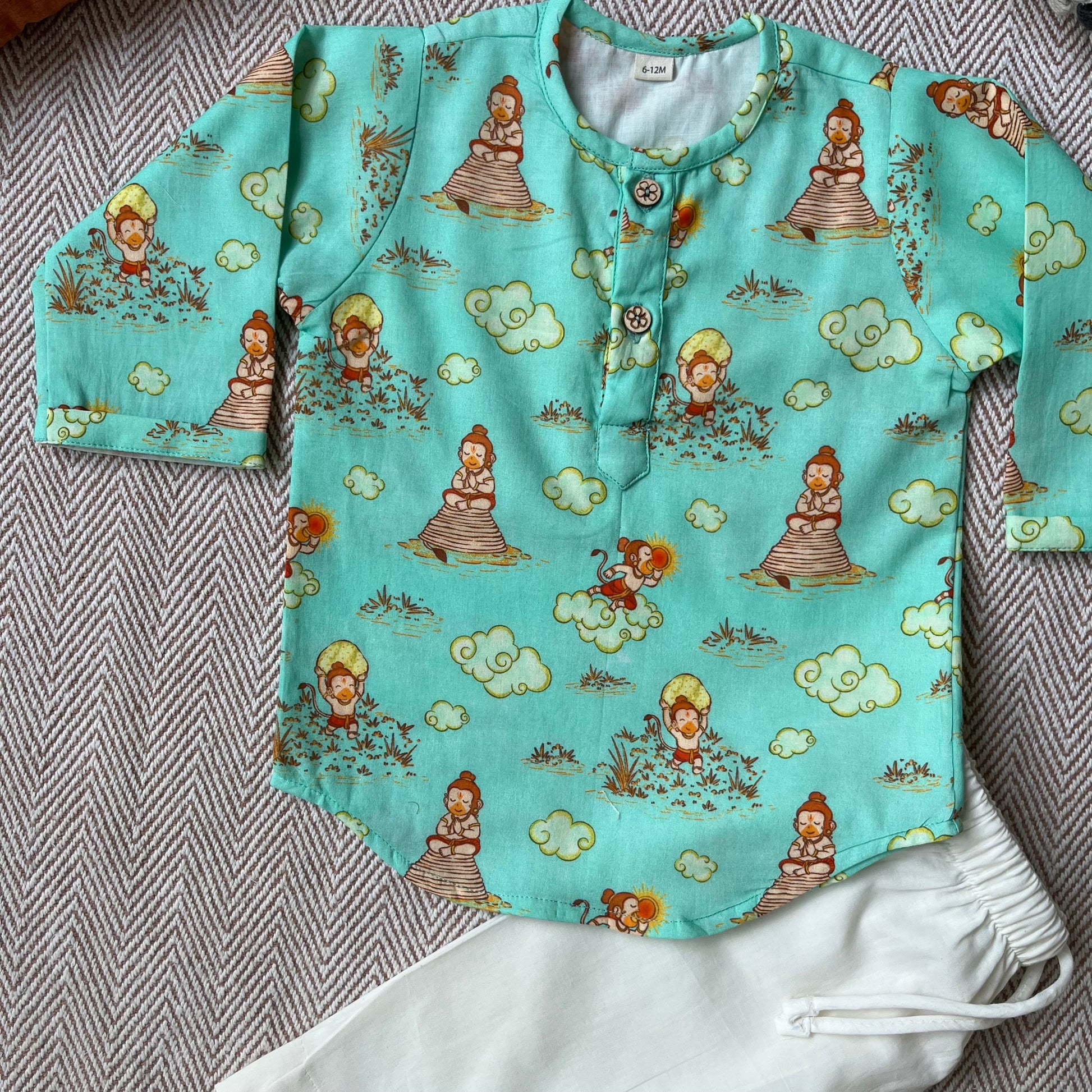 Organic Cotton Unisex 'Veer Hanuman' Kurta Set - Green